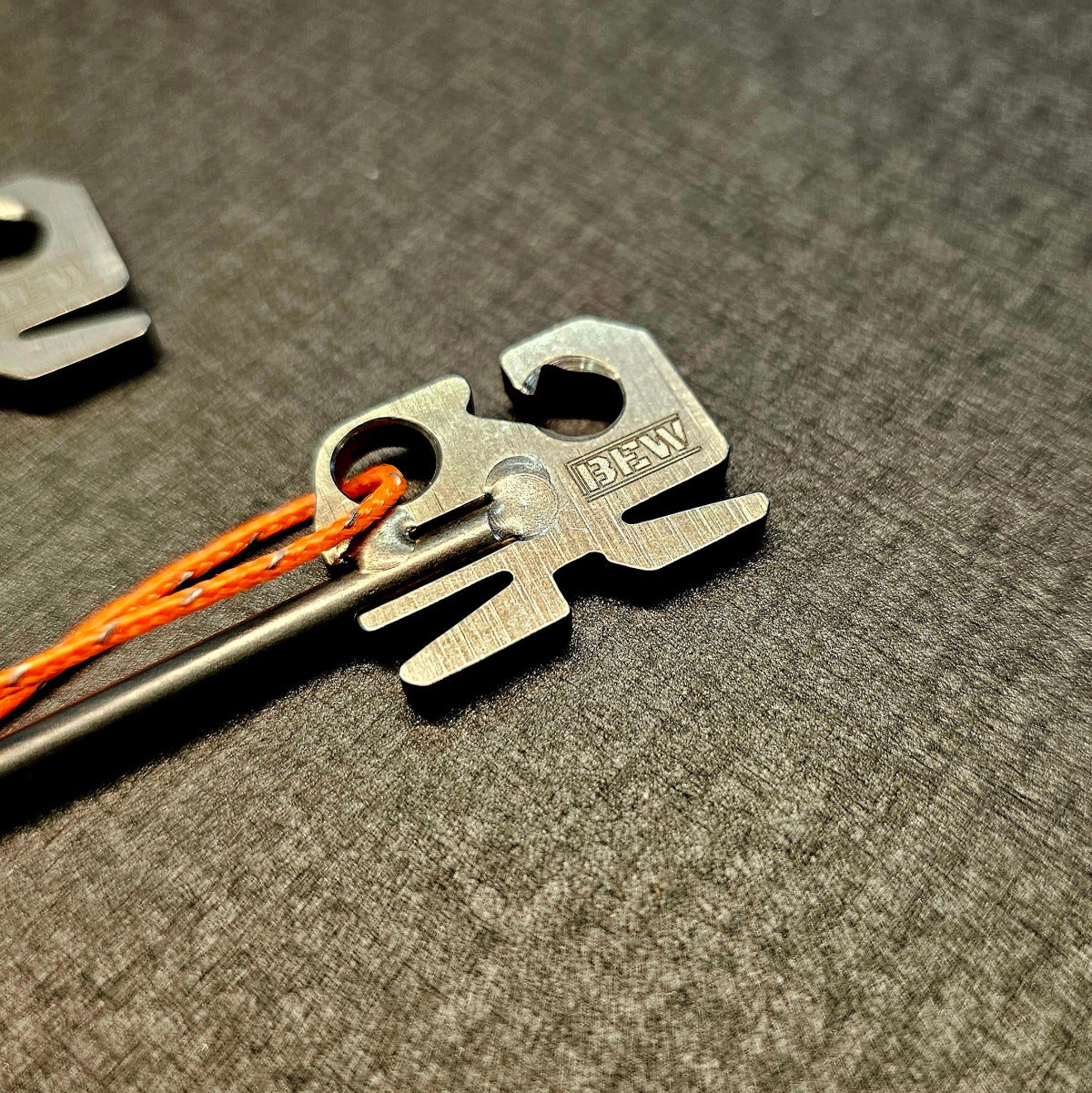 The Dirt Dart is a revolutionary knot-less tent/tarp stake that doesn't rely on tension to stay tied. We get it, things happen, loose soil or a sagging tarp due to the morning dew combined with wind can release other knot-less tent stakes in a hurry. Brautigam Expedition Works has solved that problem. The Dirt Dart directs the guy-line through the stake and crosses over itself around the cleats, resulting in a no-knot solution that is secure, no matter the conditions. Made out of high strength titanium alloy, these handmade tent stakes will last for years of hard use. Also can be used as a regular tent stake/peg by simply looping your guy-line through the hook.