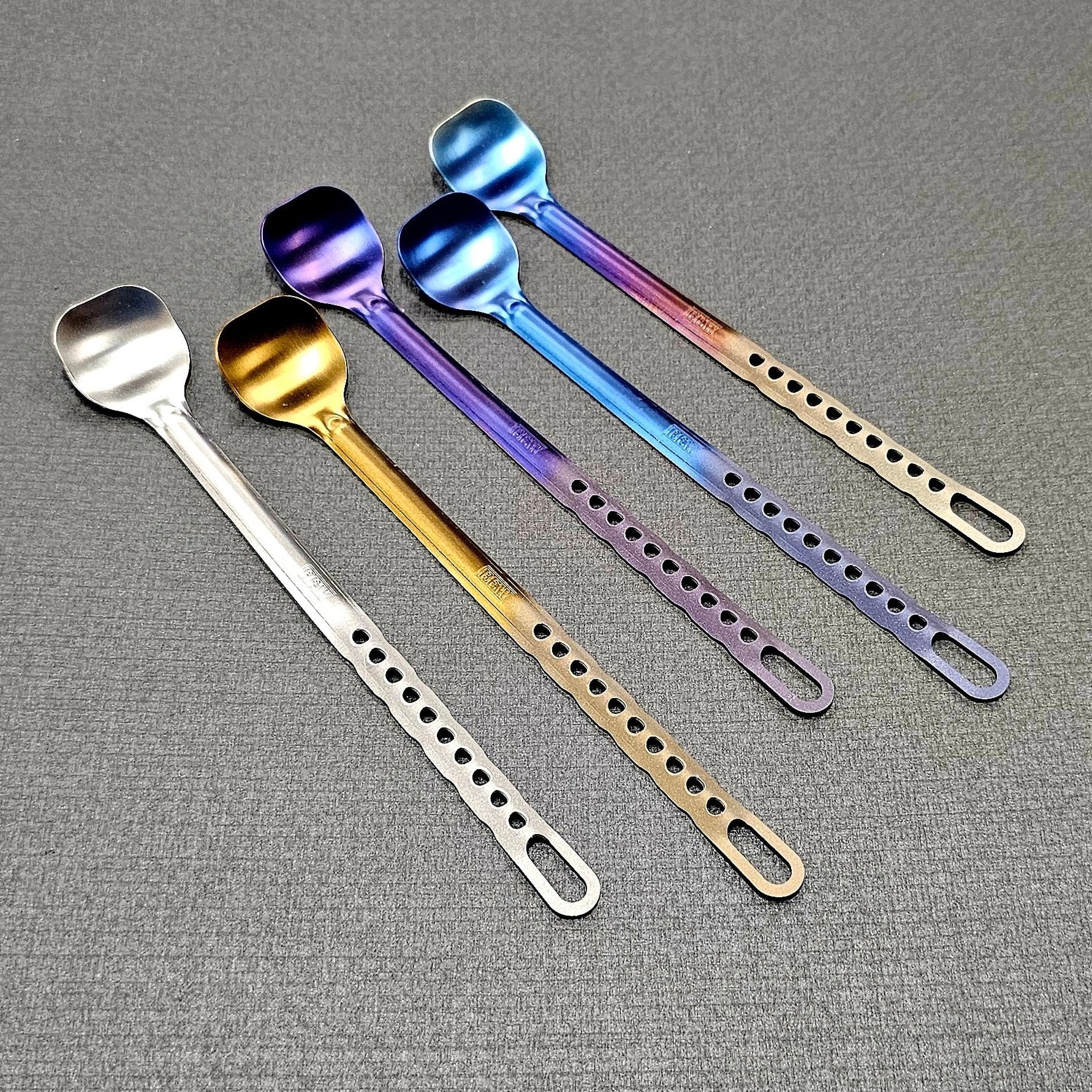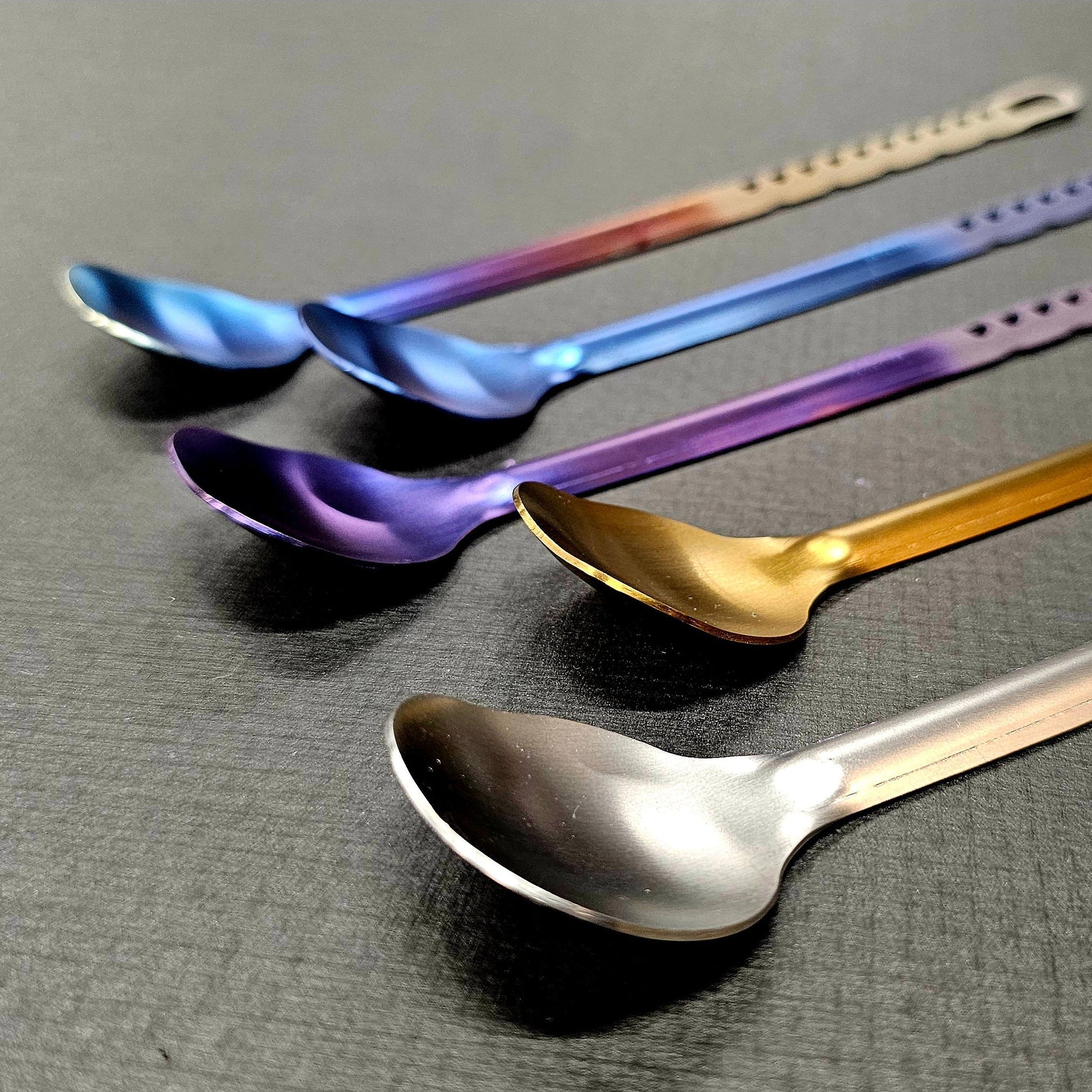 Note: Along with making these, the anodizing is also done by hand, there are color variations and color transition variations, which add to the uniqueness of each piece and truly express the character of every spoon I create.