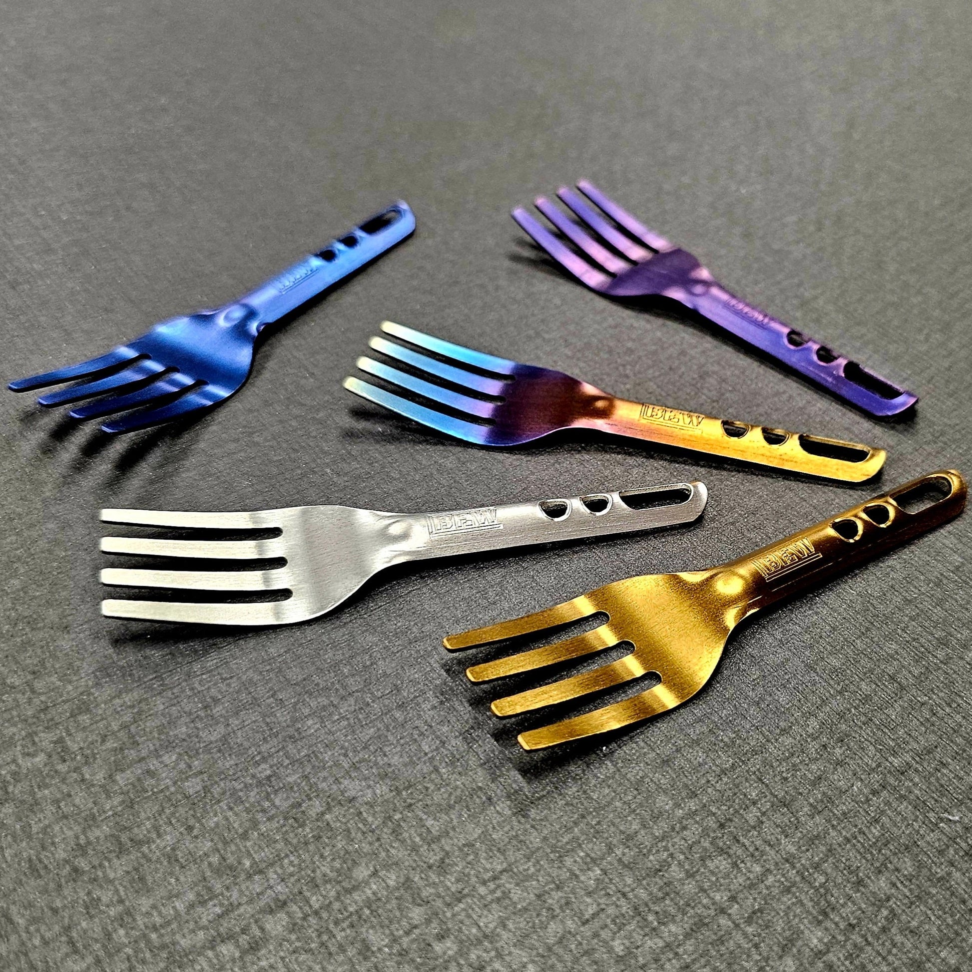 Note: Along with making these, the anodizing is also done by hand, there are color variations and color transition variations, which add to the uniqueness of each piece and truly express the character of each fork I create.