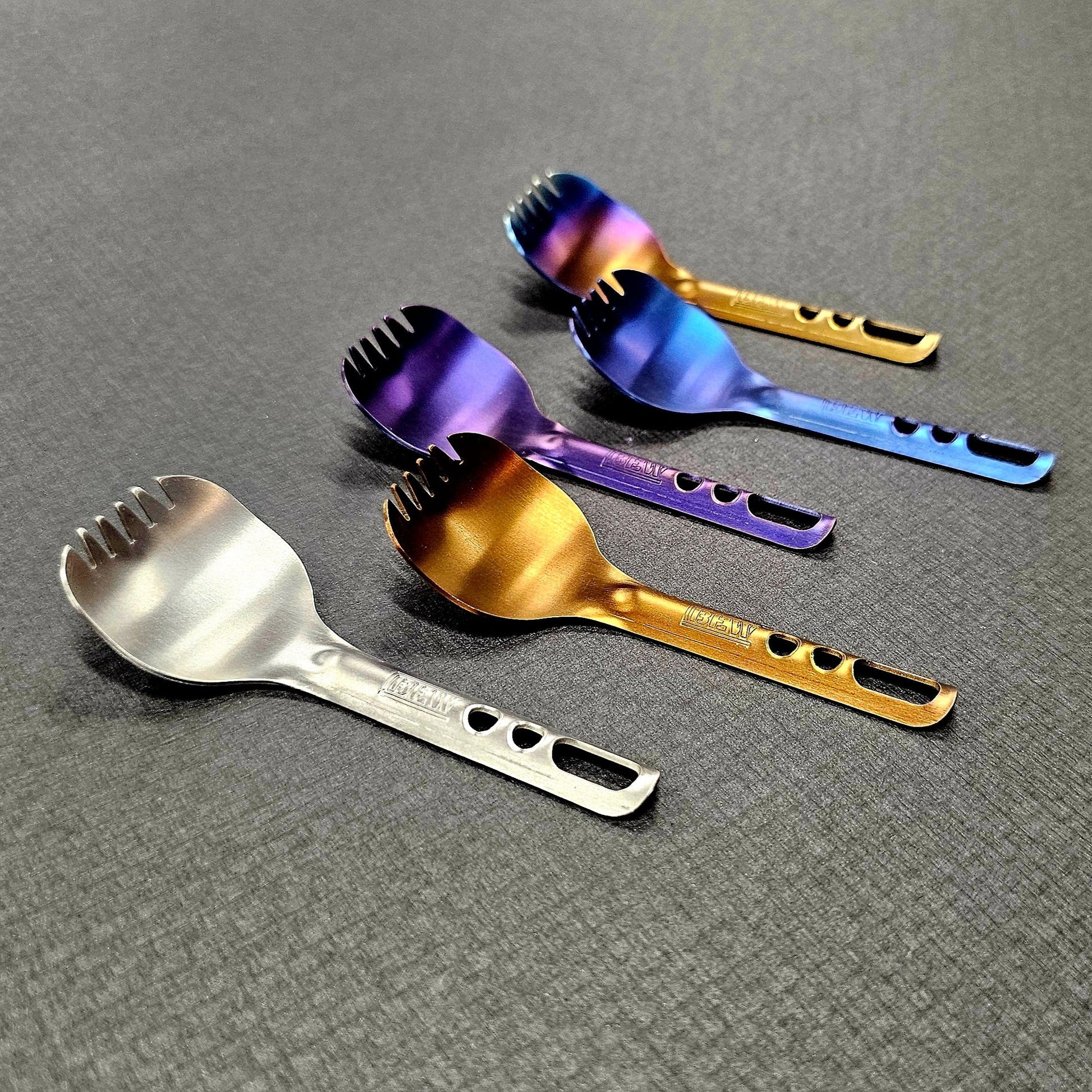 Note: Along with making these, the anodizing is also done by hand, there are color variations and color transition variations, which add to the uniqueness of each piece that truly express the character of each spork I create.